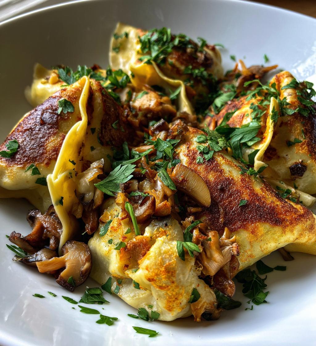 If you’re looking for a savory dish to complement your sweet banana pudding, try these mushroom-filled dumplings!